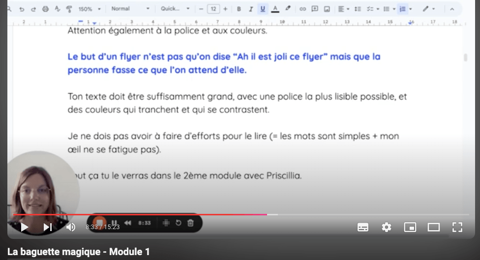 La formation se compose de 3 modules dont 2 avec des vidéos loom dans lesquelles on filme nos écrans (et nos têtes 😄) et on t’explique chaque étape pas à pas.