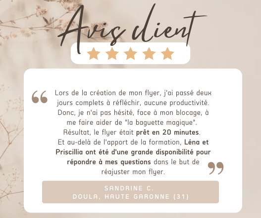+ BONUS EXCLUSIF : Une vidéo inédite où Priscillia te montre, écran partagé, comment créer ton flyer sur Canva en partant d'une feuille blanche !