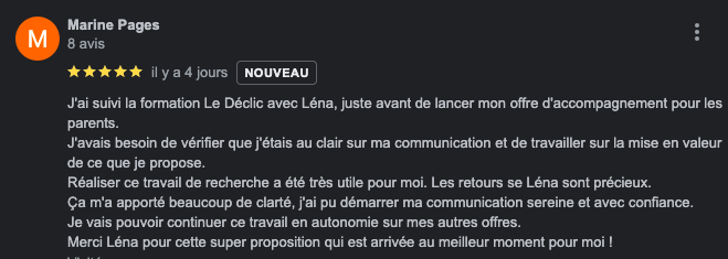 C’est notamment ce qui m’a aidé, depuis 2021, à accompagner avec succès plus de 40 entrepreneures au service de la parentalité.